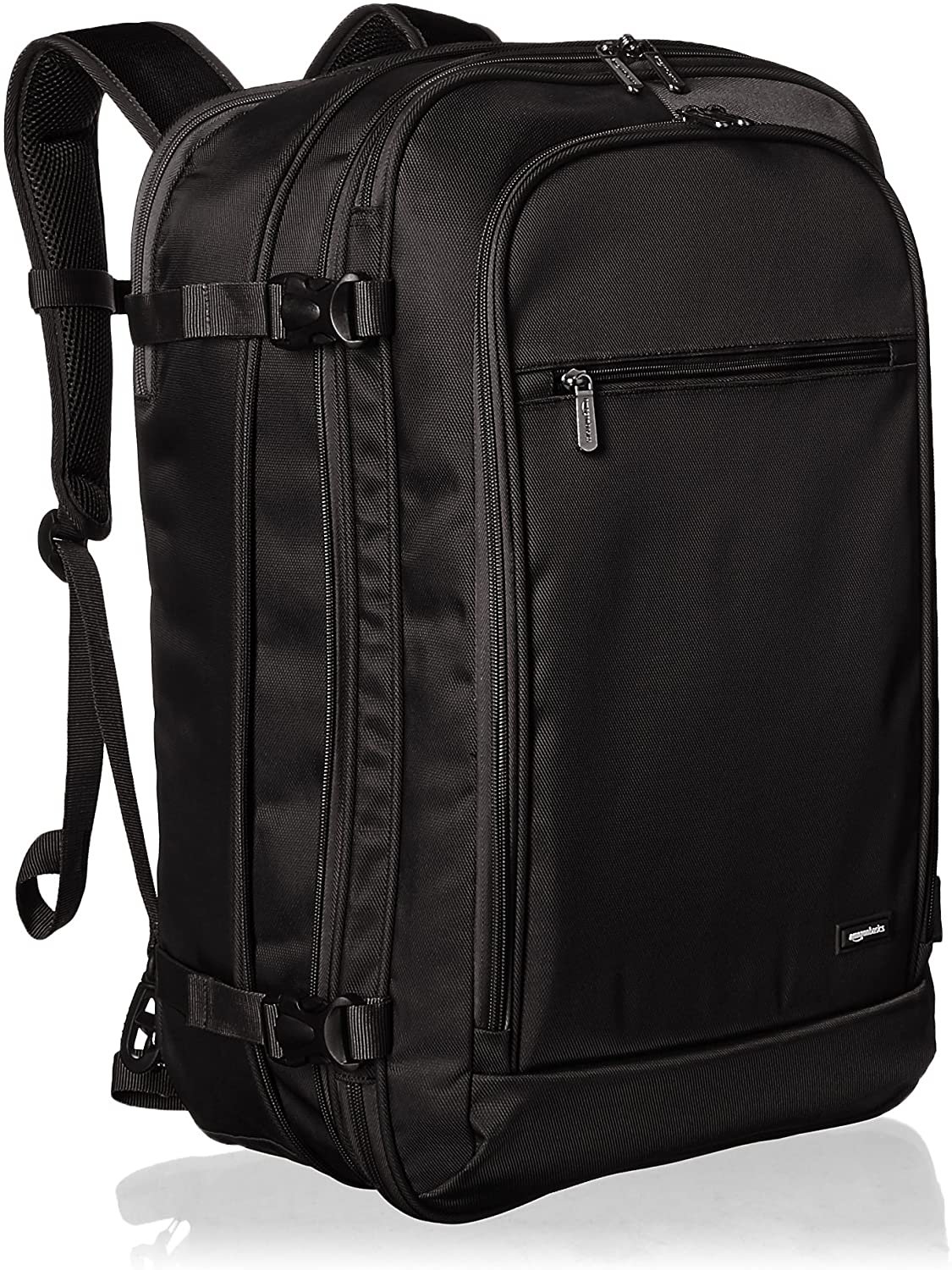 Carry-on travel backpack with internal, zippered laptop sleeve; ultra-flexible and lightweight; made of durable polyester